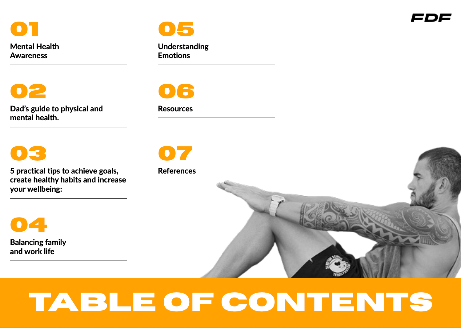 Includes breakdowns of the seven pillars of Dad health, practical grounding techniques, habit frameworks, emotional tools like the Anger Iceberg and Emotions Wheel, and complete resource lists for Australia and the USA.